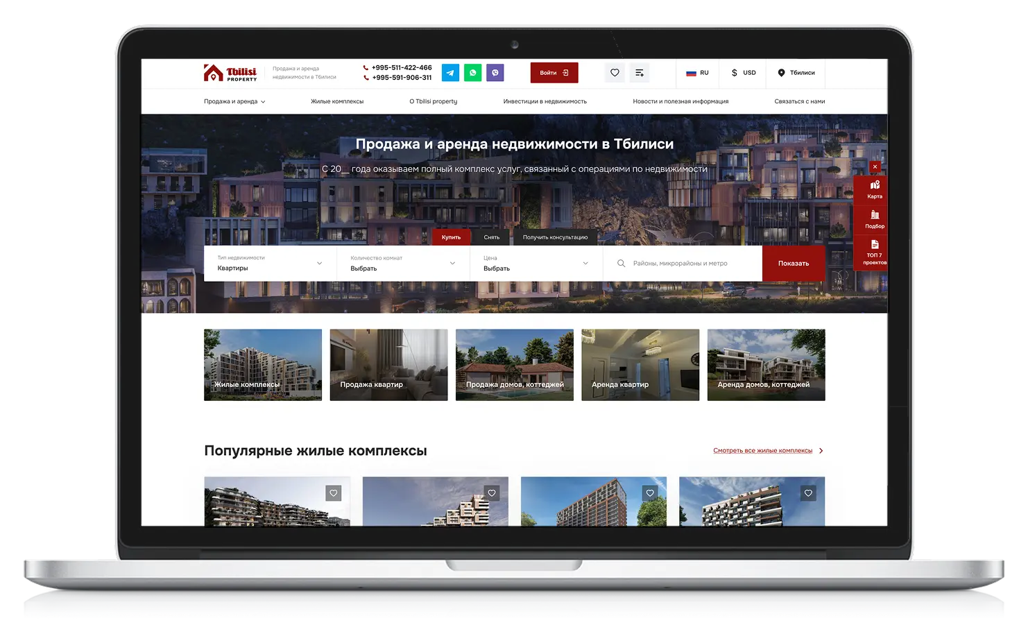Клиент более 10 лет занимается недвижимостью в Грузии и хорошо понимает, что нужно покупателям, арендаторам и инвесторам. Однако с текущим сайтом работать стало невозможно: устаревший дизайн, неудобная админка, низкая конверсия и постоянные ограничения в развитии. Было понятно, что инструмент нужно менять полностью.