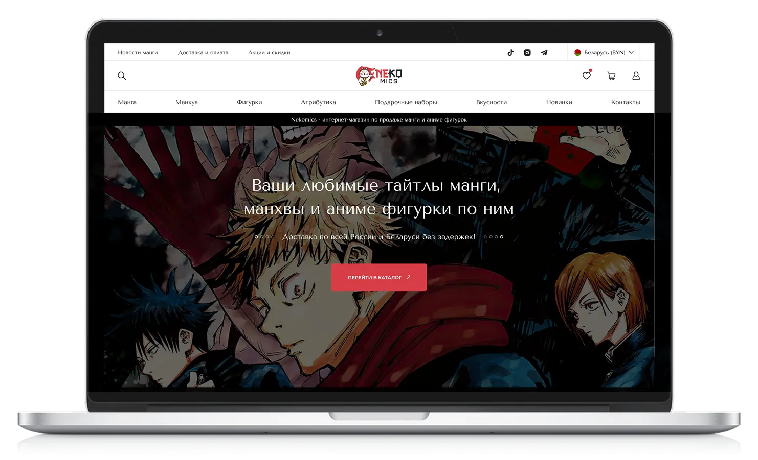 Клиенту требовался яркий и запоминающийся интернет-магазин, который отражал бы тематику аниме и визуально вовлекал целевую аудиторию — фанатов японской культуры. Задача включала разработку современного дизайна, продуманного каталога с фильтрами, карточек товаров с подробными характеристиками и системой онлайн-оплаты. Особое внимание нужно было уделить адаптивности, простоте навигации и быстрой загрузке сайта и SEO-структуре сайта.
