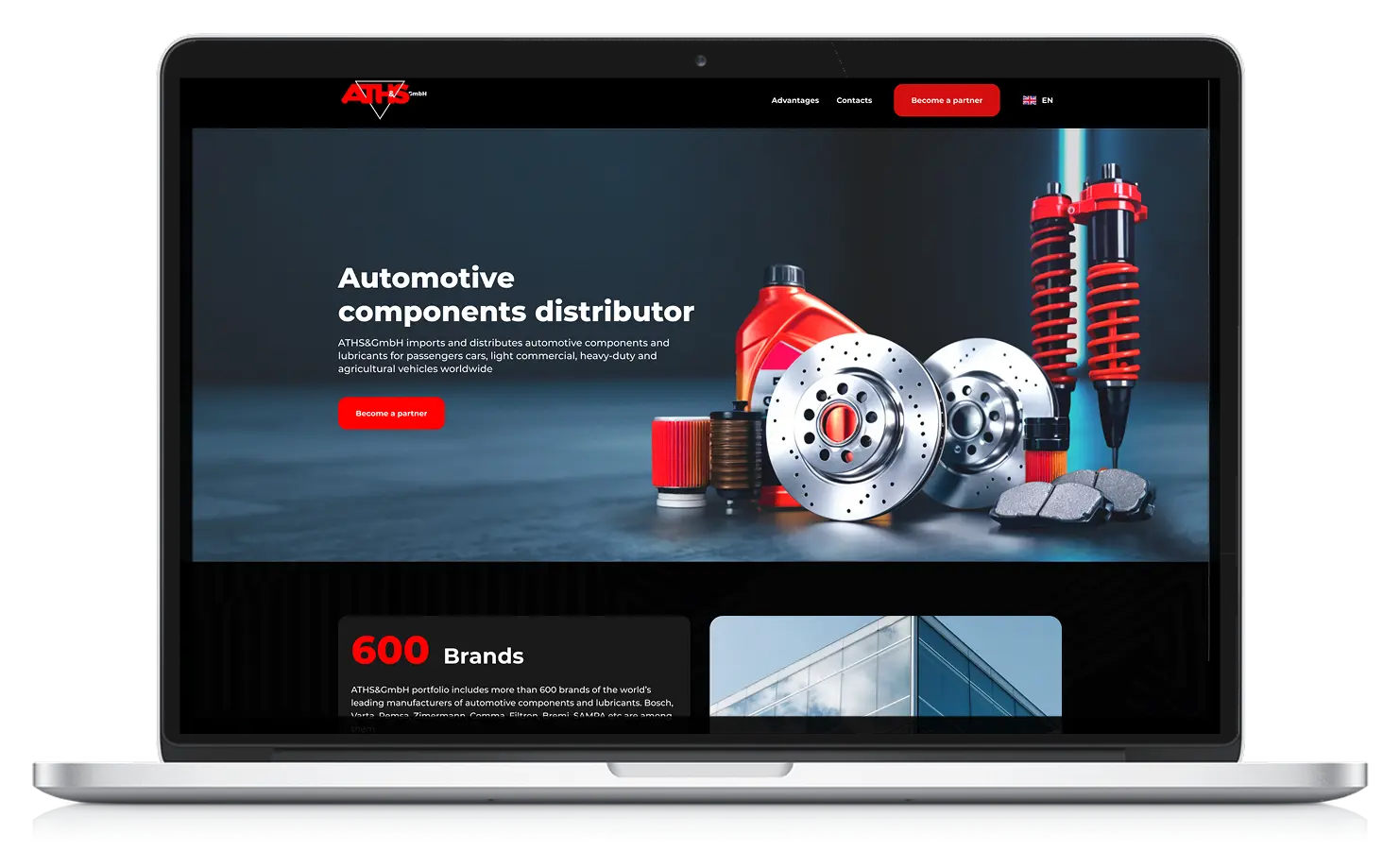 Задача — разработать лендинг, который презентует ATH&S как глобального поставщика автокомпонентов. Сайт должен чётко отражать масштабы дистрибуции, продемонстрировать ключевые товарные направления и преимущества сотрудничества. Важна лаконичная подача, строгий стиль и адаптивная вёрстка — сайт рассчитан на международную B2B-аудиторию и должен служить инструментом деловой коммуникации.