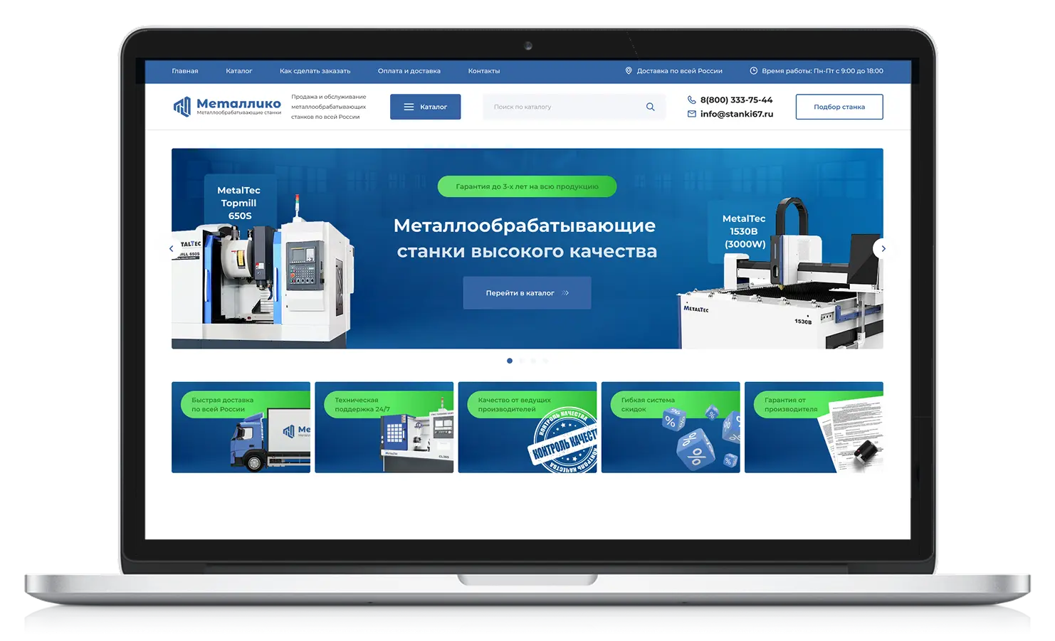 Сделали акцент на удобство: вся структура интернет-магазина помогает покупателю за пару шагов найти нужный металлообрабатывающий станок и оформить заявку
