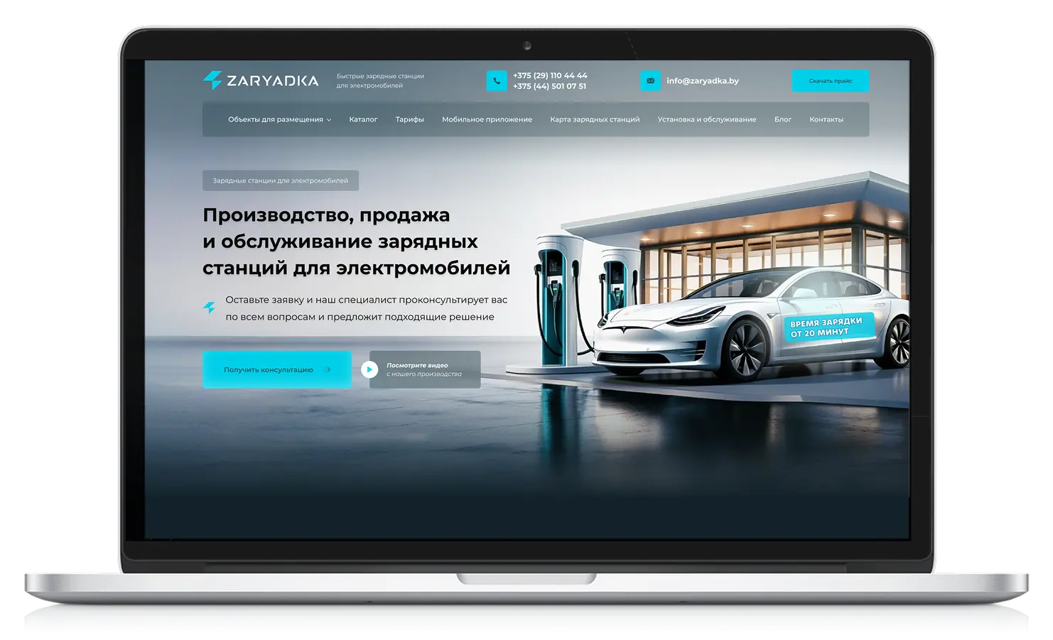 Клиенту требовался сайт-каталог для презентации ассортимента зарядных станций собственного производства. Основной фокус — на удобной структуре, понятной навигации и грамотной подаче технической информации. Важно было реализовать адаптивный интерфейс, подготовить решение к продвижению в поисковых системах и обеспечить удобную коммуникацию с потенциальными заказчиками через формы обратной связи.